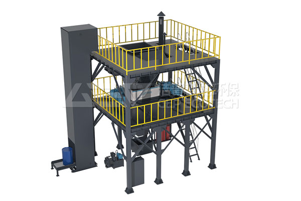 GV Intelligent tower type hazardous waste shredding station is a set of intellectualized, modular and one-stop hazardous waste pre-treatment plan independently developed by GEP according to the characteristics of hazardous waste disposal, which integrates lifting system, storage bin, safety protection system, crushing system, fire fighting system, intelligent control system and maintenance system. The system can not only provide professional intelligence for customer, but also combine with professional fire company to design a high-quality fire control system , at the same time professional design and treatment have been done in the aspects of anti-corrosion, anti-leakage and explosion protection of equipment, so as to realize the safety control in the whole process from feeding to tearing and ensure the efficient and stable operation of the shredding line.