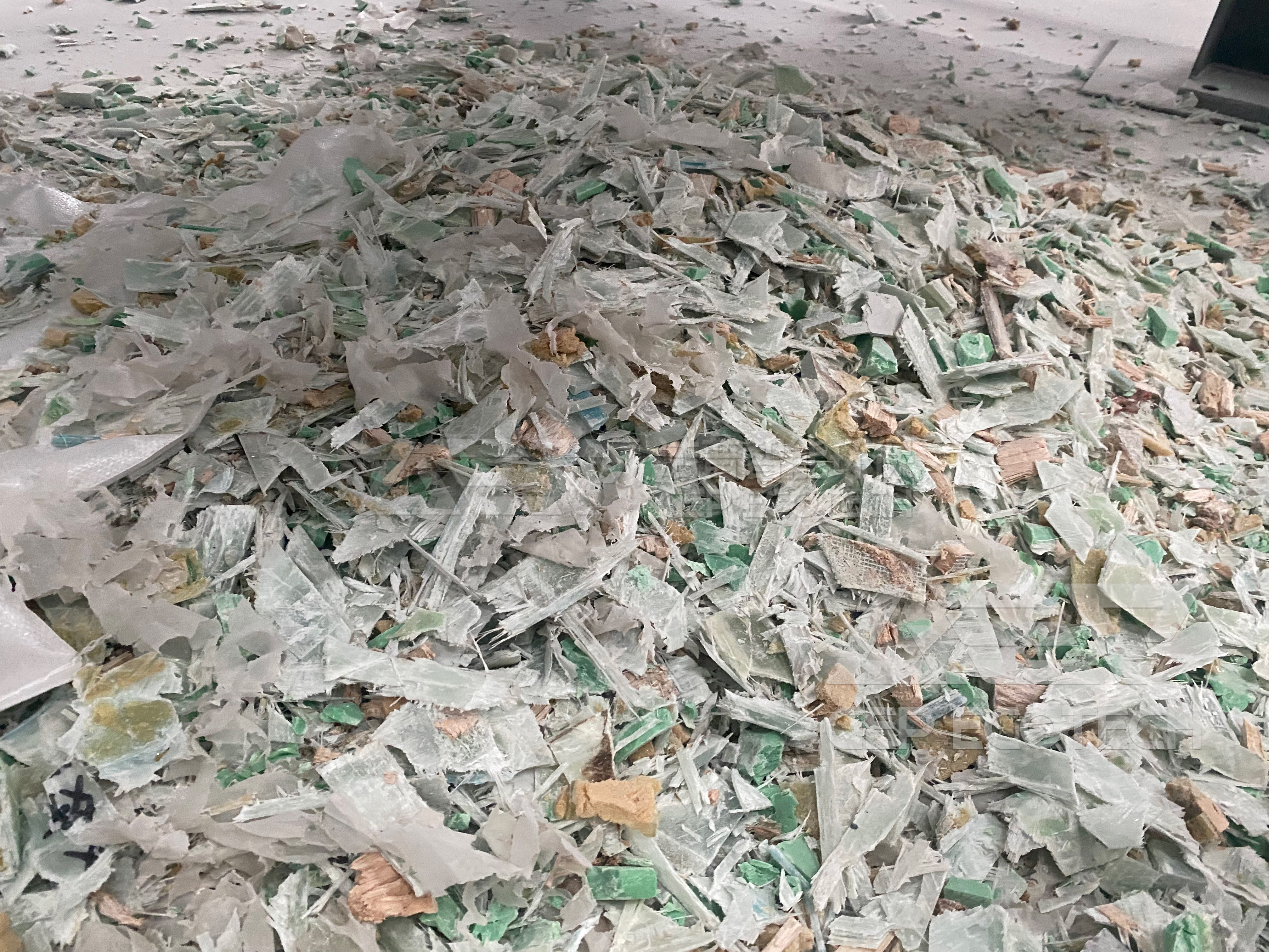 The so-called physical crushing and recycling of FRP is to use a shredder to crush the FRP, and use it as a filler for other different composite materials based on the particle size after crushing, or directly as a raw material for FRP regeneration. This method is simple, efficient, low-cost, and easy to operate. It is also a commonly used treatment method for FRP. According to the situation of recycled FRP, the crushing production line can also flexibly add iron removal equipment, impurity removal equipment, cleaning equipment, drying equipment, packaging equipment, etc. GEP ECOTECH can flexibly design plans and configure production lines according to actual situations.