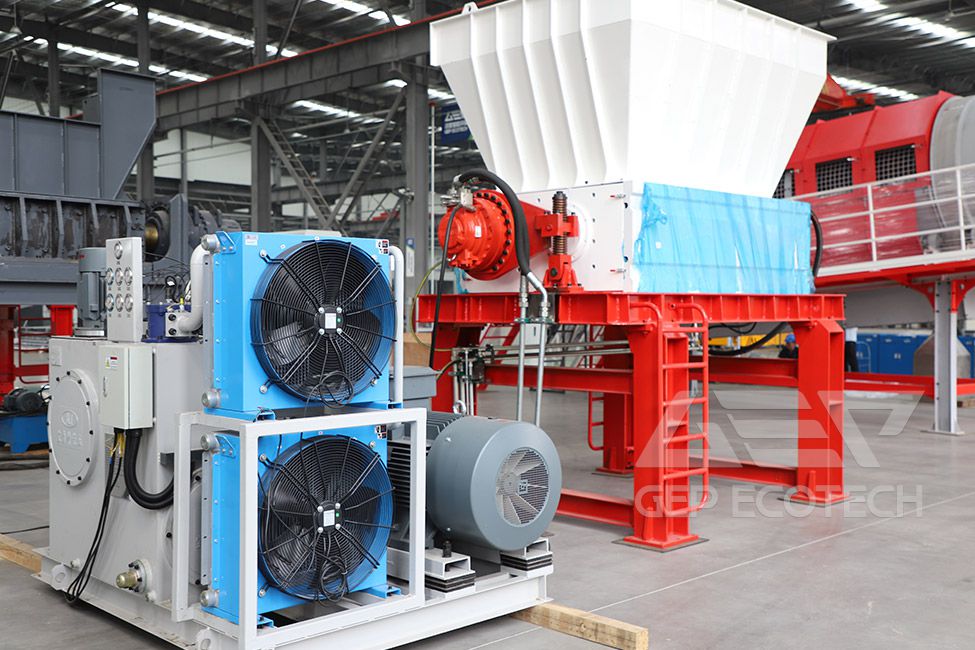 More and more customers purchase waste tire shredder, which are mainly used in the field of waste tire recycling. The recycling of waste tires mainly adopts the way of crushing and recycling. The collected waste tires are crushed and then widely used in various fields.In terms of policy, technology, equipment and market, it is a good time to invest and develop waste tires!According to the market demand, GEP ECOTECH has developed GDT tire crusher equipment. The equipment is an environmental protection and energy-saving tire crushing equipment with the design concept of energy saving, consumption reduction and emission reduction, and its technical indicators meet the national standards. The tool is forged with imported materials from Europe, which is durable and has a good crushing effect on the steel wire in the tire. The overall structure is compact, low speed, high torque, low vibration, low noise, in line with the requirements of environmental protection.The price of waste tire shredder is related to the
