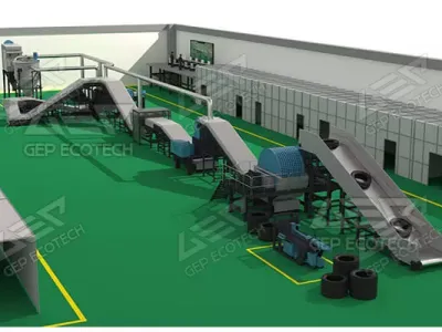After the end-of-life car and truck tires are recycled, the tire rubber blocks obtained through the processes of wire extraction, shredding and steel wire separation are conveyed to the pyrolysis furnace, which then undergoes anaerobic high temperature cracking to produce renewable resources such as tire oil/heavy oil, carbon black, steel wire/hair and non-condensable gas. GEP ECOTECH CO., LTD customized a complete tire shredding and cracking refinery solution for a waste tire cracking and disposal centre…